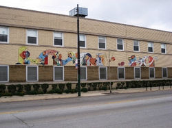 In 2002, this program produced a large scale mosaic for the main exterior wall of the school, allowing high visibility to pedestrian and vehicle traffic. The experience enabled the paid apprentices to verbalize and express through their artwork, issues pertaining to their “identity” as physically/developmentally challenged students. The theme, “I Am Just Who I Am”, was developed as a positive, affirming call for self-acceptance. The creation of the mural proved to be a major event in the scholastic lives not only of the apprentices but also for the school community in general.